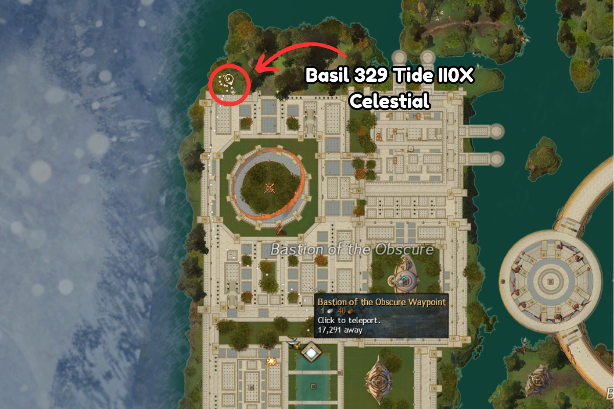 Head north from the Bastion of the Obscure Waypoint — [&BEcOAAA=] to the edge of the island and drop down to the lowest level you can