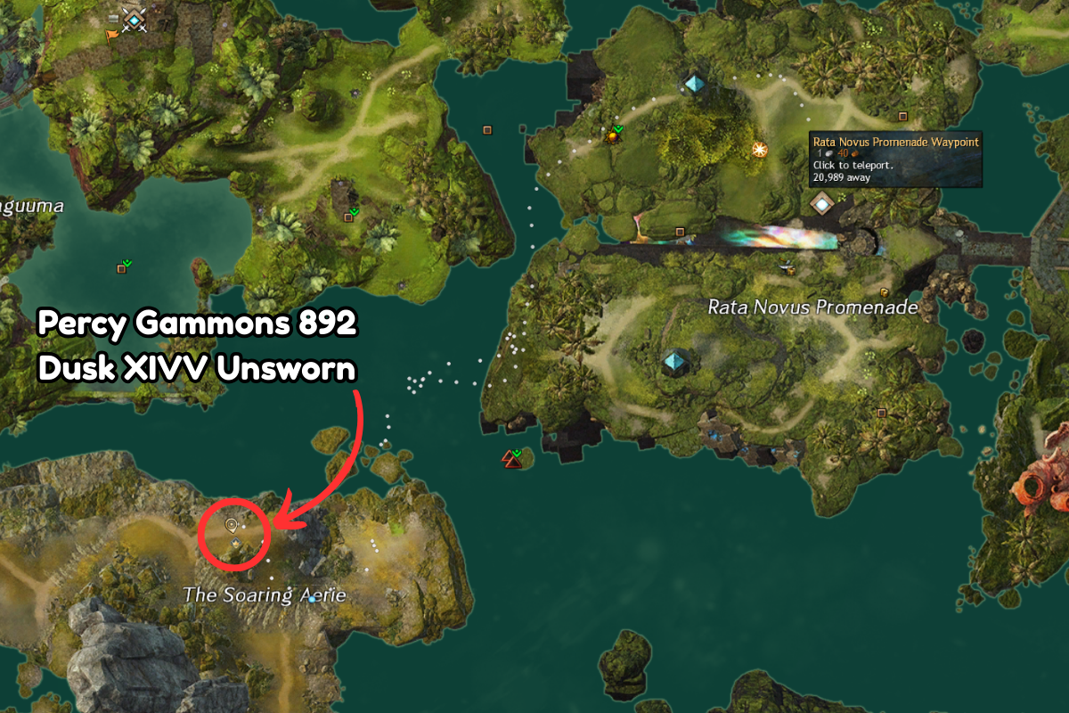 South from the Rata Novus Promenade Waypoint — [&BOANAAA=], take the updraft to the Soaring Aerie island