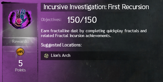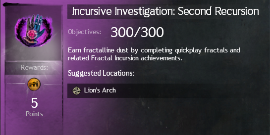 Earn fractalline dust by completing quick play Fractals and Fractal Incursion achievements