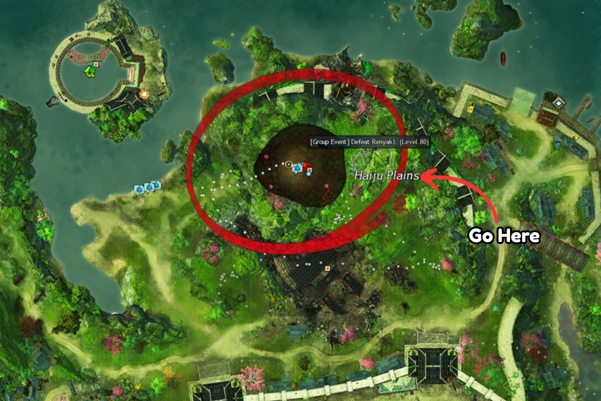 Go to the The Ley-Line Confluence Waypoint — [&BPUHAAA=] and go straight west down the Ogre Lane and use the bouncing Mushroom to get up to this adventure
