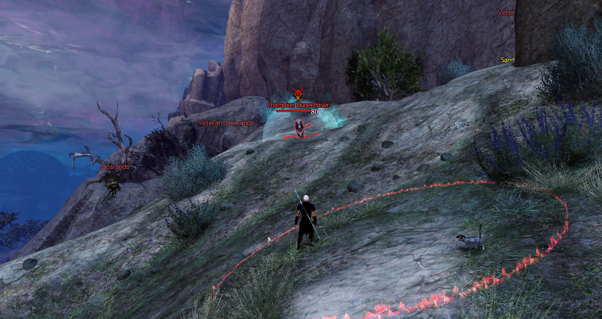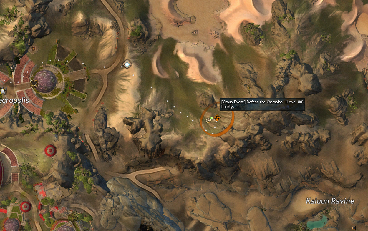 We are showing the Jackal Race in The Desolation near the Sand Jackal Run Waypoint — [&BHcKAAA=] but any race will work in Path of Fire maps