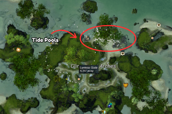 You will need to be on a character that has completed the Truths Unearthed story - look slightly west of the Luminous Glade Point of Interest — [&BLcPAAA=] (or straight west of theDark Leviathan Waypoint — [&BJwPAAA=])