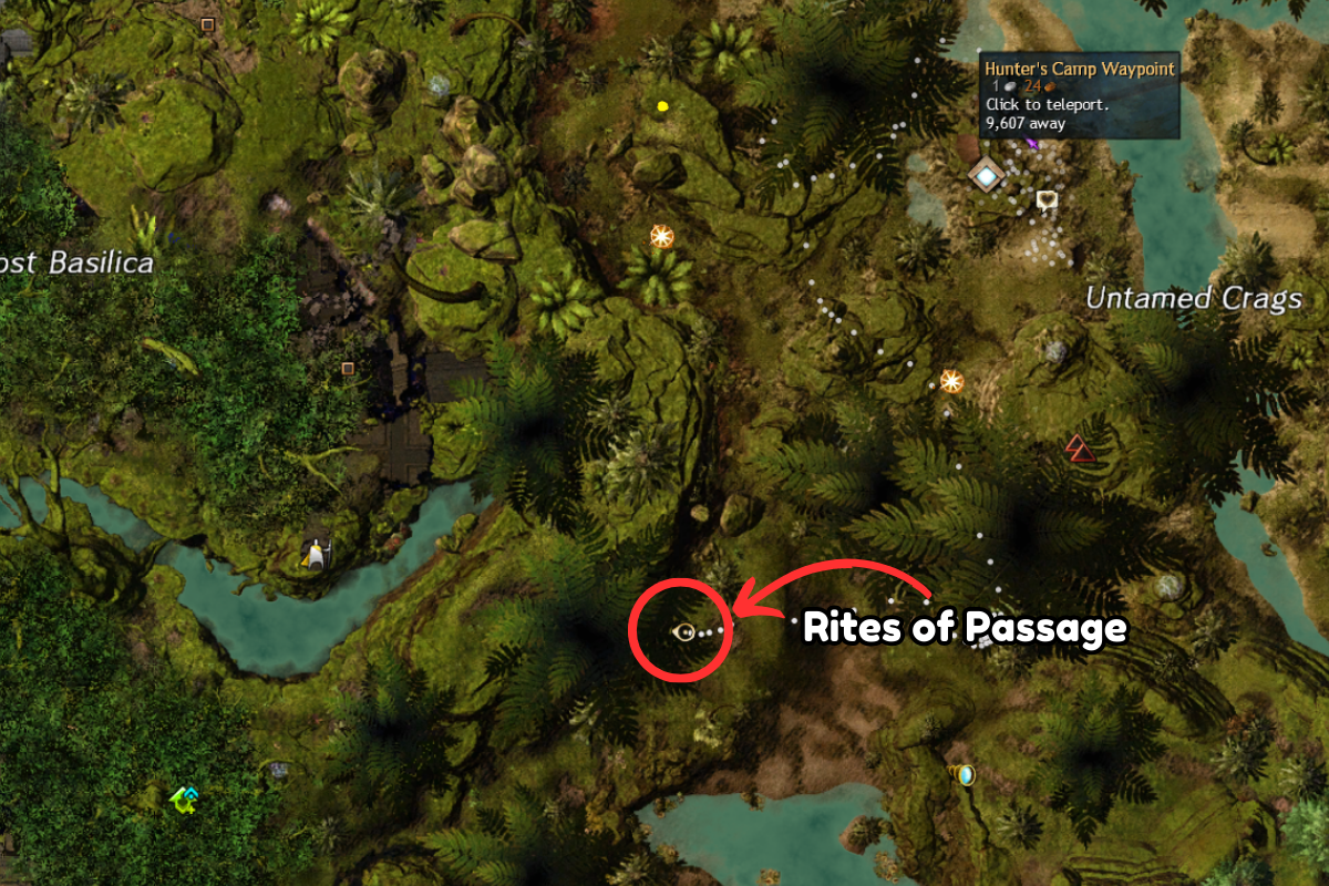 Complete the Old Magic Adventure in the Lost Basilica, southwest from the Hunter's Camp Waypoint — [&BIoPAAA=]