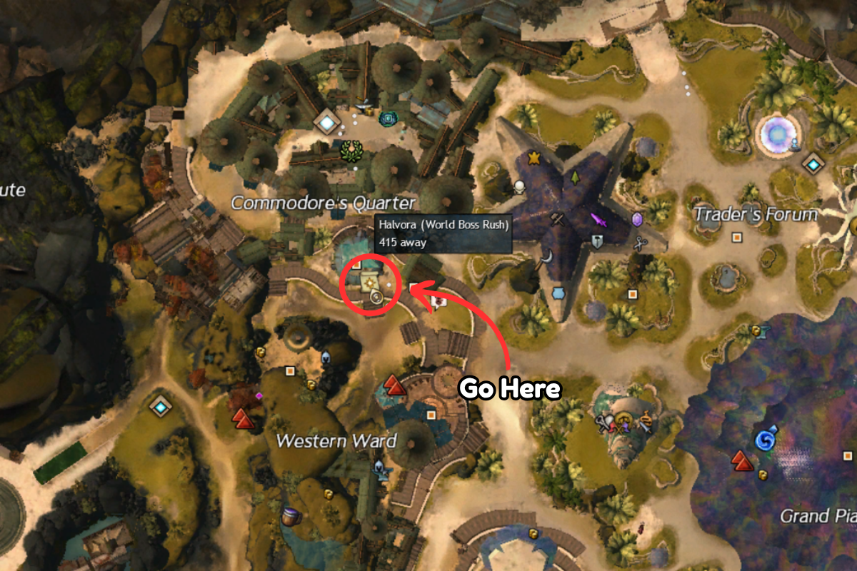 Meet with Halvora in Lion’s Arch to learn about the World Boss Rush event