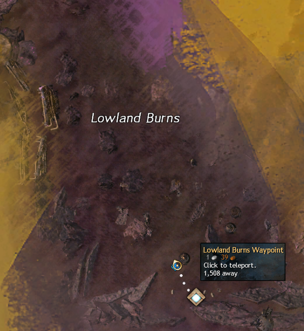 Head northwest from the Lowland Burns Waypoint — [&BE4DAAA=] in Blazeridge Steppes